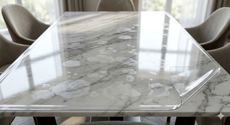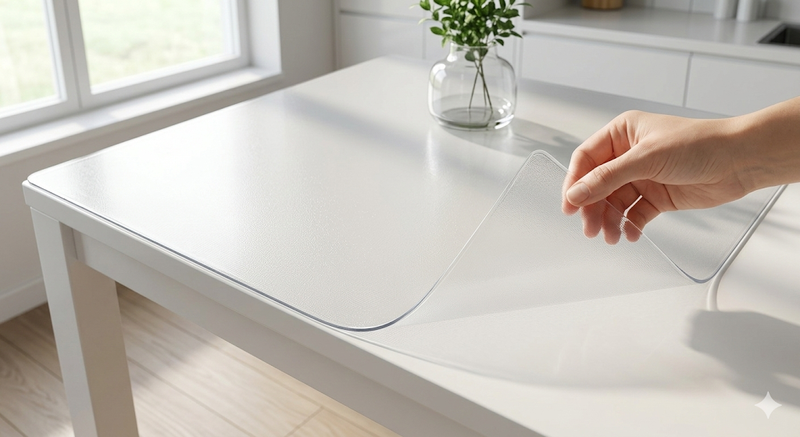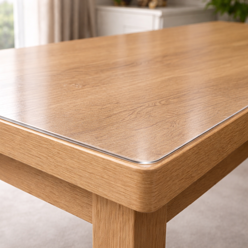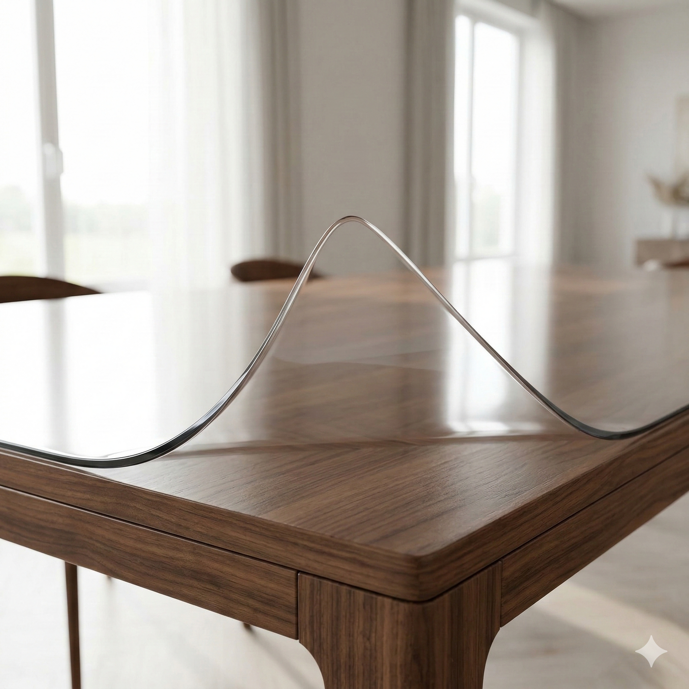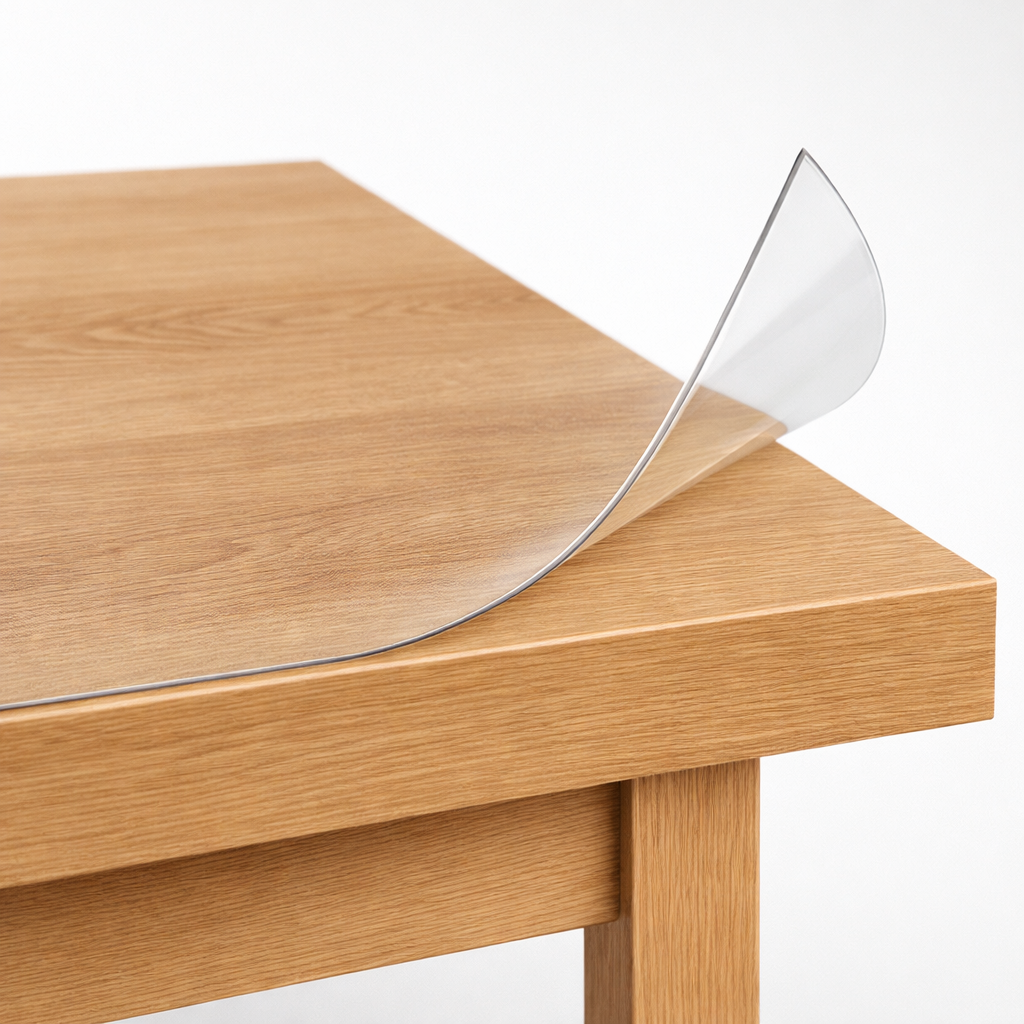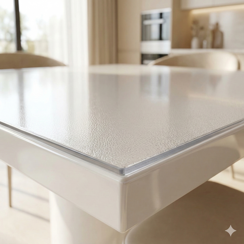 Do stołów szklanych i lakierowanych na wysoki połysk zdecydowanie polecamy folię Ryflowaną 1.5 mm. Posiada ona mikroteksturę od spodu, która zapobiega powstawaniu nieestetycznych pęcherzyków powietrza (tzw. efektu rozlanej wody).
