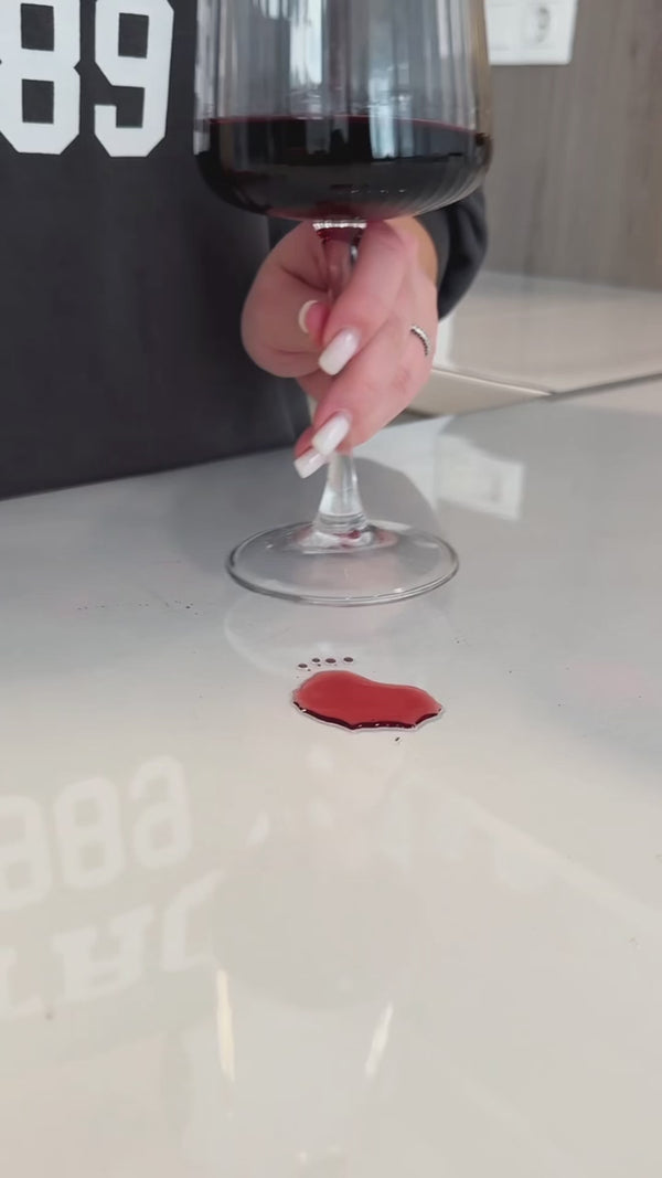 Nie. Nasze elastyczne szkło ma dużą wagę i specjalną antypoślizgową powłokę, dzięki czemu idealnie przylega do blatu pod własnym ciężarem i nie przesuwa się podczas codziennego użytkowania.